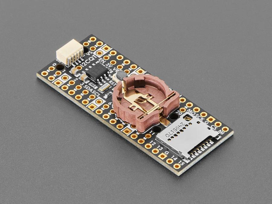 Ding dong! Hear that? It's the PiCowbell ringing, letting you know that the new Adafruit PiCowbell Adalogger is in stock and ready to assist your Raspberry Pi Pico and Pico W project with handy hardware and datalogging.The PiCowbell Adalogger is the same size and shape as a Pico and is intended to socket underneath to make your next data logging or data reading project super easy. Micro SD card socket? Yes! STEMMA QT / Qwiic connector for fast I2C? Indeed. Real Time Clock with battery backup for accurate timekeeping? Of course!Please Note! There are a lot of possible configurations, and we stock various headers depending on how you want to solder and attach. Especially if you want the Pico on top so that the BOOTSEL button and LED are accessible. Use the Pico Stacking Headers if you want to be able to plug into a breadboard or other accessory with sockets. Use the Pico Socket Headers if you want to plug directly in and have a nice solid connection that doesn't have any poking-out-bits. Use the Short Socket Headers for a very slim but pluggable design; note that you'll want to trim down the Pico's headers or use the short plug headers on the Pico to have a skinny sandwich. Solder the PCB directly to the Pico headers - of course, this is very compact and inexpensive, but you won't be able to remove the PiCowbell.The PiCowbell Adalogger provides you with:Right angle JST SH connector for I2C / Stemma QT / Qwiic connection. Provides 3V, GND, IO4 (SDA), and IO5 (SCL)MicroSD card holder for adding as much storage as you could possibly want for reading or writing. Connected to SPI pins 16, 18, 19 and card select on 17. Optional card detect line can be connected to pin 15.PCF8523 Real Time Clock with CR1220 Coin cell backup for many years of timekeeping. Set the time once using our example sketches, and then you can data-log with accurate timestamps. Uses I2C.Reset button - Press to restart your programMany pads on the Adalogger have a duplicate hole pad next to it for solder-jumperingThe ground pads have white silkscreen rectangles to easily identify, plus one long ground strip near the reset buttonGold-plated pads for easy solderingIf using the Philhower Arduino core, the Wire peripheral is already set up to use IO4 and IO5. If using CircuitPython or MicroPython, you'll need to let the code know to look at 4+5 for SDA+SCL pins.Does not come with a micro SD card or a coin cell battery. A CR1220 coin cell is required to use the RTC battery-backup capabilities! We don't include one by default to make shipping easier for those abroad, but we do stock them, so pick one up or use any CR1220 you have handy.