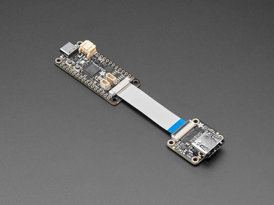 * Supports DVI output via HSTX peripheral * CircuitPython support for 320x240 pixels at 16-bit color, pixel-doubled to 640x480 * Optional 640x480 true resolution with 4 or 8-bit color, or 1 or 2-bit grayscale * Integrated hot-plug-detect and CEC connections Simply connect a 22-pin FPC cable between the Feather RP2350 and the adapter, and you're ready to drive HDMI monitors and displays with ease. The differential Clock, Lane0, Lane1, and Lane2 connections ensure robust signal quality, while I2C connectivity allows display EEPROM reading. Hot-plug-detect and CEC features add to the versatility, enhancing your connectivity options.Note: 22-pin FPC cable sold separately. Each order includes one DVI adapter board.