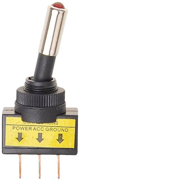 IWH presents the IWH 19023, a robust toggle switch characterised by its vibrant red actuator. Designed for automotive applications, this switch operates at a rated capacity of 12 volts and supports a current of up to 20 amperes, making it suitable for controlling various electrical systems within a vehicle, such as lighting, auxiliary devices, or aftermarket modifications. Engineered for durability and reliability, the IWH 19023 toggle switch is intended for integration into custom dashboards or circuit panels, providing efficient switch operation in demanding environments. Its single-pole configuration ensures straightforward installation and functionality in automotive circuits.