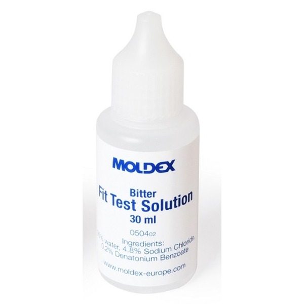 Roztwór testowy Moldex Bitter jest używany podczas testowania jakościowego dopasowania w celu oceny skuteczności uszczelki maski oddechowej.