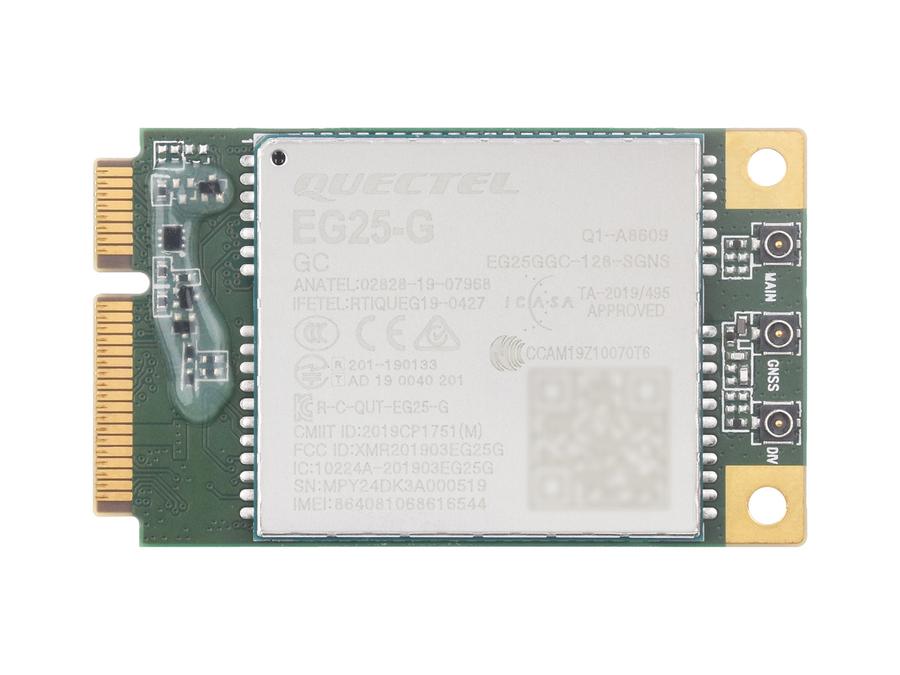 The Quectel EG25-G mPCIe Module is a high-performance LTE Cat 4 module, designed to deliver efficient and flexible communication solutions. Encased in a PCI Express Mini Card form factor, this module is versatile enough to fit a wide array of device architectures.Boasting support for multiple wireless communication modes, it seamlessly switches between a range of networks, ensuring uninterrupted connectivity whenever and wherever you need it. With download speeds of up to 150 Mbps and upload speeds of up to 50 Mbps, it handles data-intensive tasks with ease, from streaming to rapid file transfers.Widely applicable across IoT ecosystems, its built-in GNSS enables accurate positioning, serving industries like logistics, telematics, and smart city infrastructures. The robust design is ideal for environments where stable and reliable communication is crucial, offering long-lasting performance even in challenging conditions.