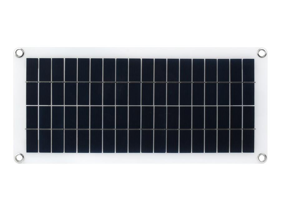 The semi-flexible polycrystalline silicon solar panel delivers efficient energy conversion with its 18V 10W capacity. Ideal for a variety of outdoor applications, it offers a 5V regulated output, ensuring steady and reliable power supply for small devices and gadgets.This panel can be gently curved to fit non-flat surfaces, maximizing its utility on boats and camper roofs. Engineered for robustness, it withstands adverse weather conditions, making it a versatile choice for uninterrupted power in remote locations.Lightweight yet durable, this panel is easy to install and transport, providing a sustainable energy solution with minimal setup effort. Perfect for keeping essential devices charged during trips or emergencies, it turns sun rays into a trustworthy energy source.