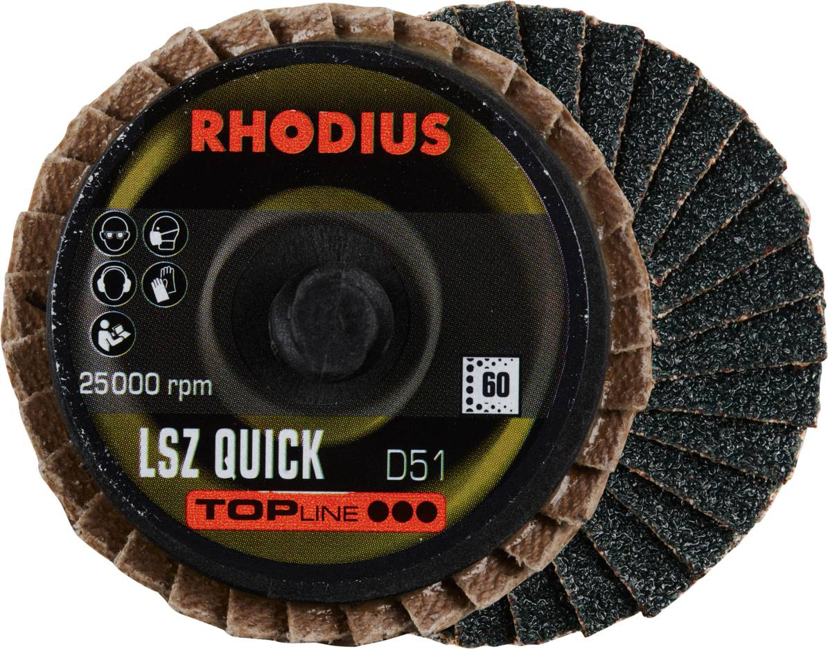 Przydatność maszyny: Do stosowania z miniaturowymi tarczami listkowymi RHODIUS Quick Change Disc LSZ QUICK wymagana jest płyta nośna. Dysk Quick Change Disc mocuje się do płyty nośnej za pomocą jednego prostego ruchu. Dzięki temu adapterowi można go bez problemu stosować w maszynach z napędem w postaci wałka giętkiego (z kątową rękojeścią i uchwytem 6 mm). Przydatność materiału: Ta tarcza Quick Change Disc została specjalnie opracowana do obróbki stali nierdzewnej (stal VA, Inox), np. 1.4301 (X5CrNi18-10 lub 304), stal (czarna stal zwana także stalą konstrukcyjną, St37, S235JR, 1.0037 lub stal węglowa) oraz staliwo, a także aluminium i inne metale nieżelazne, takie jak miedź, mosiądz, brąz itp. Użytkownik osiąga bardzo dobre rezultaty pracy urządzeniem RHODIUS LSZ QUICK w przypadku wszystkich wymienionych tutaj materiałów. Projekt i wykonanie: Tarcza szlifierska z lamelkami cyrkonowymi przeznaczona do systemu szybkiego mocowania Quick-Change zachwyca znakomitą wydajnością cięcia i jednocześnie wyróżnia się bardzo długą żywotnością. Jakość: Dzięki szybkozmiennemu dyskowi RHODIUS Quick Change Disc LSZ QUICK użytkownik otrzymuje najlepsze narzędzie RHODIUS w swojej kategorii. Produkty RHODIUS TOPline charakteryzują się najwyższym poziomem wydajności i jakości. Zastosowanie: Narzędzie to jest bardzo dobrym wyborem, gdy wymagane jest precyzyjne szlifowanie bardzo małych powierzchni lub trudno dostępnych powierzchni. System szybkiego mocowania Quick-Change umożliwia szybką wymianę narzędzi bez zacinania się lub ześlizgiwania. Wymiary: LSZ QUICK dostępny jest w średnicach 51 mm i 76 mm. Aby zawsze uzyskać optymalny efekt pracy i wzór szlifowania, użytkownik może wybierać pomiędzy następującymi gradacjami: 40, 60, 80 i 120. Branże: Szybkozmienne tarcze RHODIUS to idealne narzędzia do różnorodnych zastosowań i wyzwań w warsztatach samochodowych podczas napraw i konserwacji, w obróbce metali, w inżynierii przemysłowej, w budowie kontenerów, a także przy montażu. Osiągają pełną wydajność w przypadku stali odpornych na korozję i kwasy, stali o wysokiej wytrzymałości i stopowych, a także stali hartowanych i blach o wysokiej wytrzymałości, ułatwiając pracę.