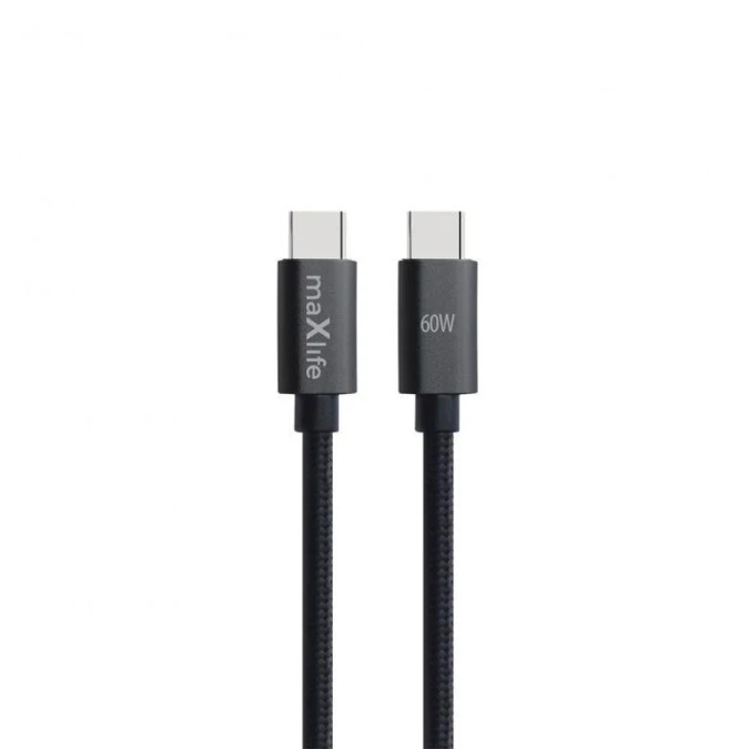 Kabel USB-C - USB-C 2.0M 60W czarny nylon - Maxlife MXUC-12
