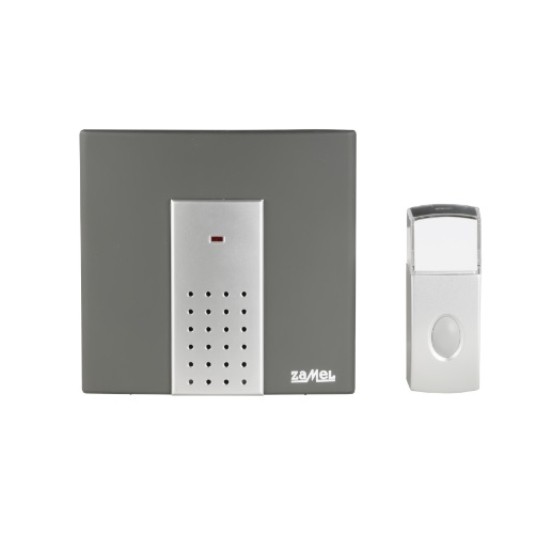 dzwonek zasilany bateryjnie, możliwość podłączenia zasilacza 6V DC (polecamy zasilacz 2WZN 7,5/150), transmisja radiowa (częstotliwość 433,92 MHz),