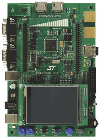 Płyta ewaluacyjna STM32373C-EVAL została zaprojektowana jako kompletna platforma demonstracyjna i rozwojowa mikrokontrolera STMicroelectronics ARM Cortex-M Zawiera dwa układy I²LWAT, trzy SPIS, trzy przetworniki USART, jedną magistralę CAN, jeden kontroler CEC, jeden 12-bitowy przetwornik ADC, trzy 16-bitowe przetworniki ADC Sigma-Delta, trzy 12-bitowe przetworniki DAC, wewnętrzny 32-bajtowy moduł SRAM i 256-bajtowy moduł Flash, suwak wykrywania ruchu, obsługę debugowania USB FS oraz technologię JTAG.