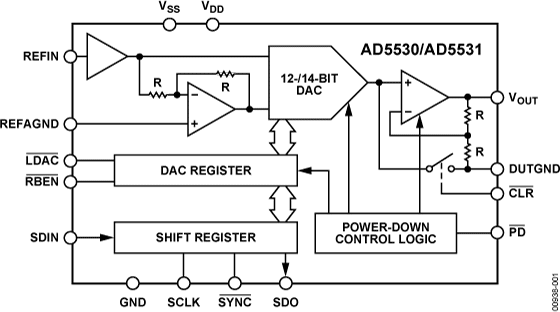 The AD5530 / AD5531 are single 12- and 14-bit (respectively) serial input, voltage output digital-to-analog converters (DAC).