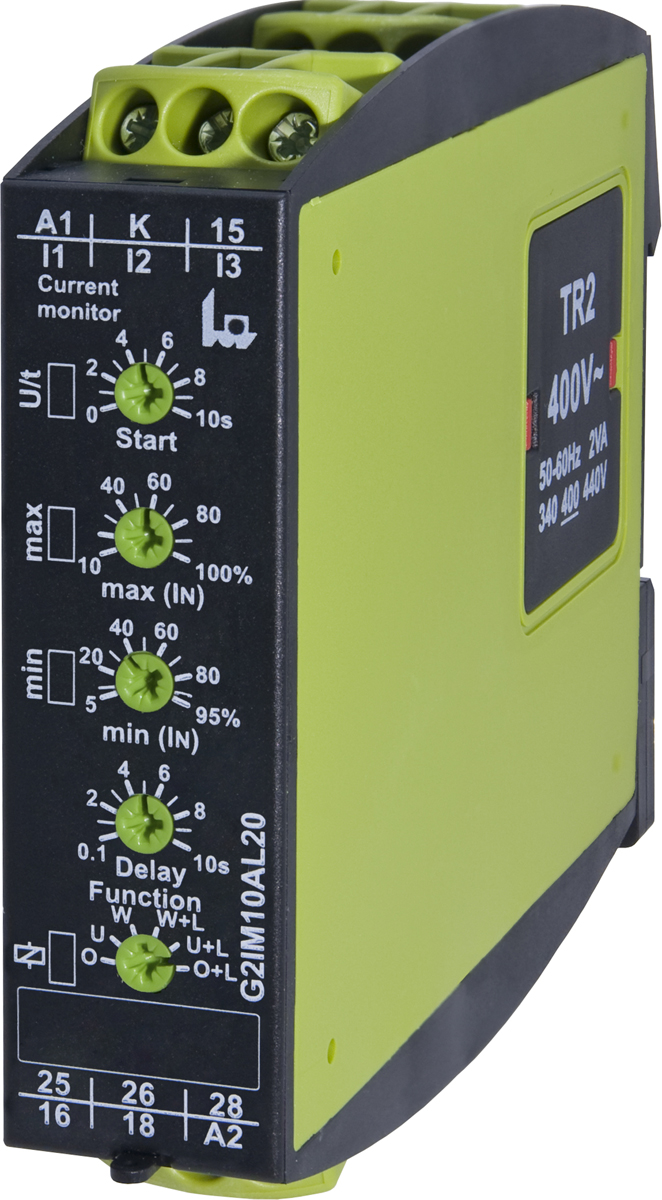 Monitorowanie prądu AC/DC serii TELE GAMMA dla pojedynczej fazy. Wyposażone w funkcję monitorowania nadprądowego i niedoprądowego oraz dwie zmiany w stykach.
