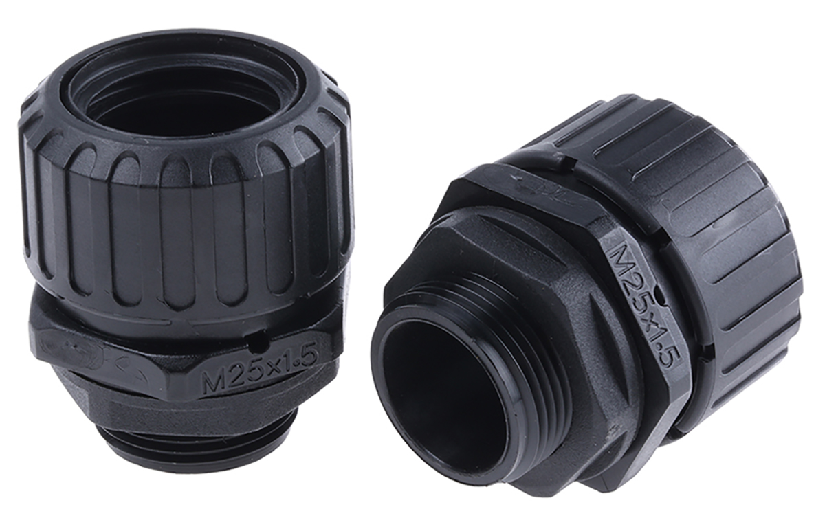 Łącznik do kanałów kablowych Adaptaflex gwint M25 25mm Złącze proste Nylon 66 IP67 Czarny