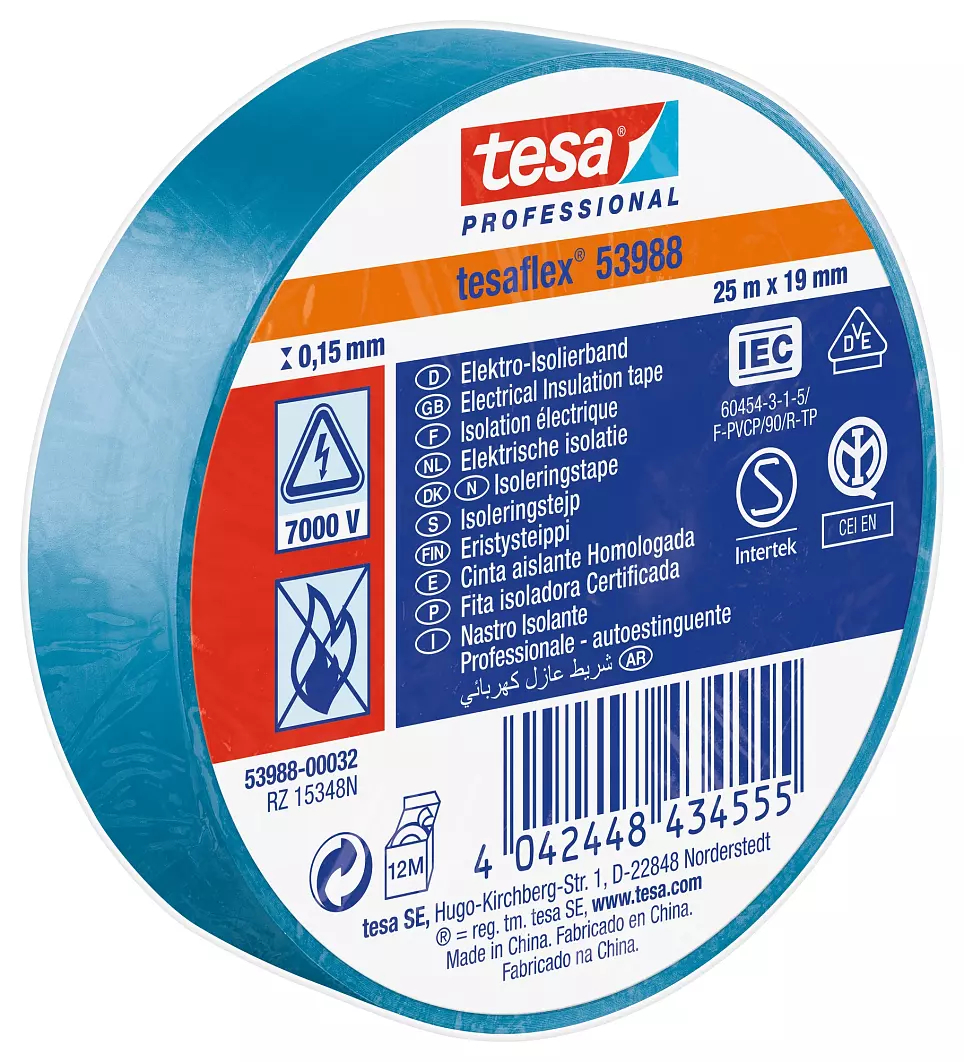 Taśma izolacyjna Niebieski szerokość: 19mm grubość: 150mm długość: 25m Miękki PVC 7000V Tesa