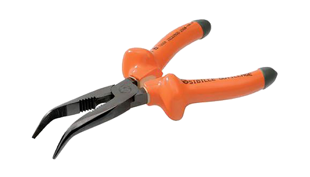 Seria MS13 185 o kącie zagięcia szczypiec pod kątem 45° z Sibille. Zaprojektowany w celu ochrony użytkownika podczas pracy na żywo, przypadkowego kontaktu lub błysku podczas pracy przy systemach zasilanych napięciem lub w ich pobliżu.
