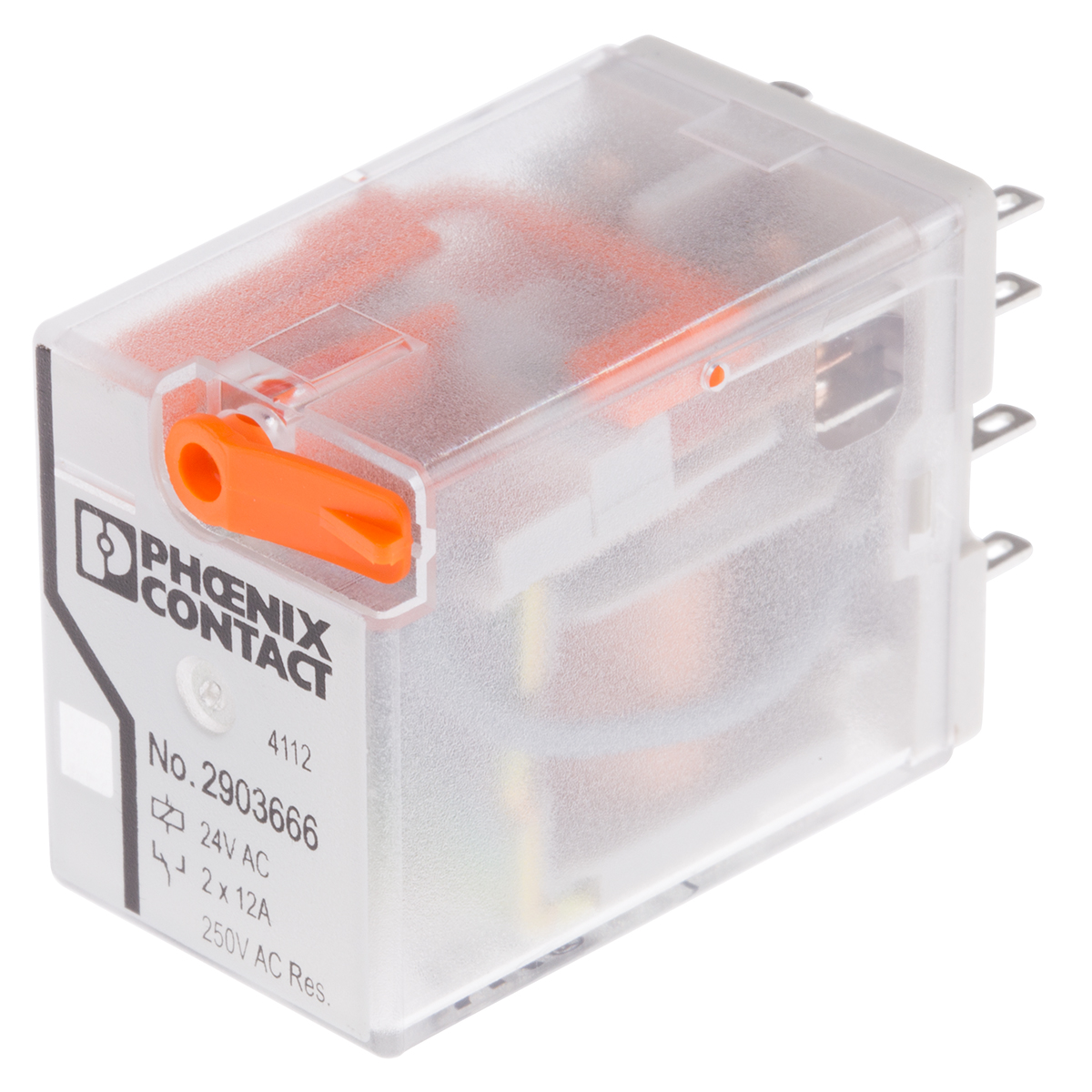 Styki Phoenix Contacts Seria przemysłowa Rifline przekaźników, podstaw i akcesoriów. IR2 ma 2 styki IR4 ma 4 styki