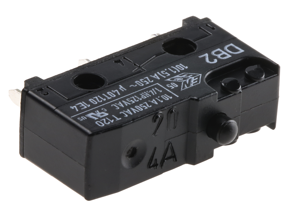 DB2 o mocy znamionowej 10 A, 250 V pr. Zm.; ENEC, EN61058 Maksymalne temperatury pracy 120°C UL 94V-0