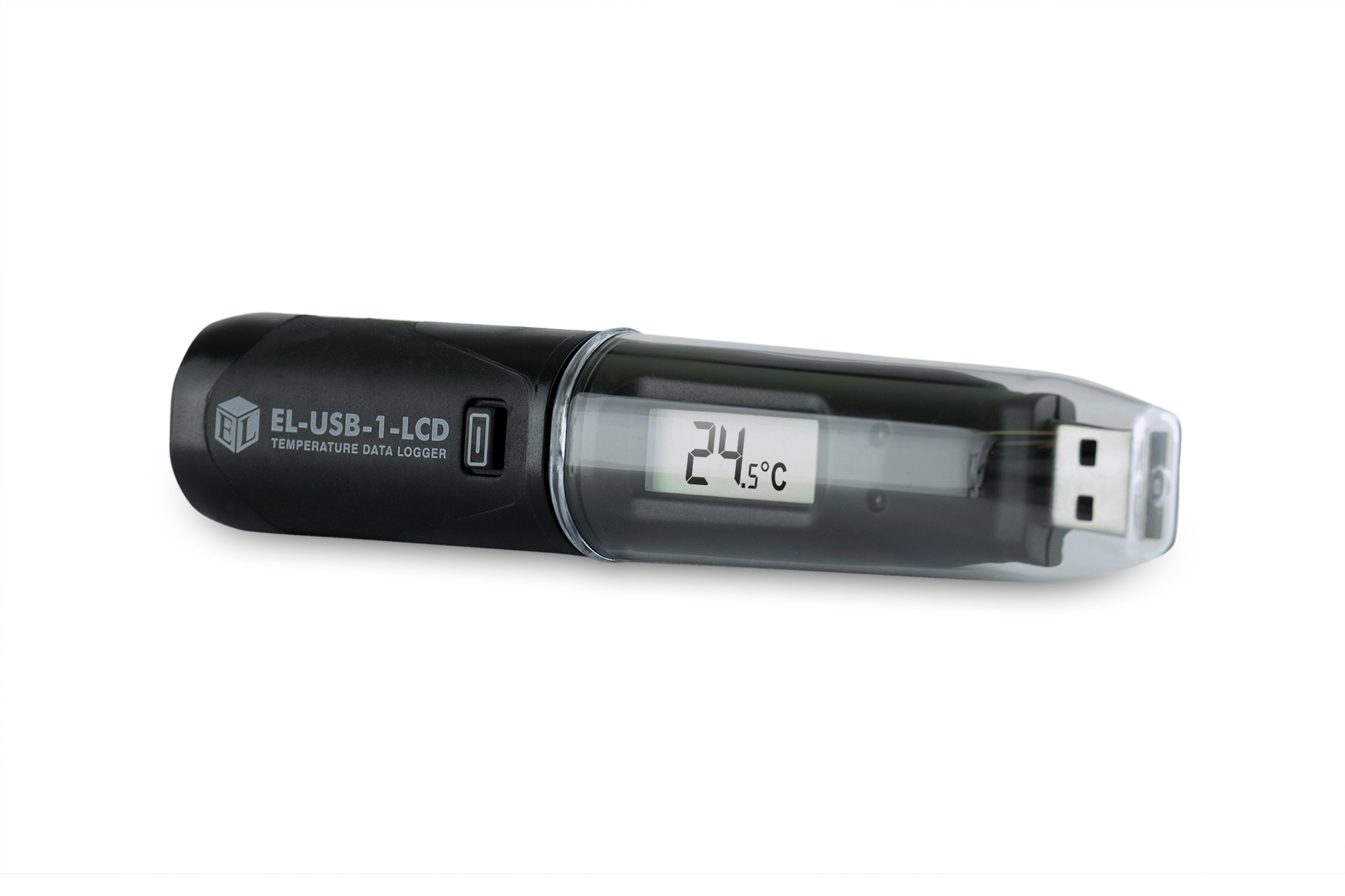 Samodzielny rejestrator danych Lascar EL-USB-1-LCD mierzy i przechowuje ponad 16 000 odczytów temperatury w zakresie od -35°C do 80°C (od -31°F do 176°F) z rozdzielczością 0,5°C (0,5°F).
