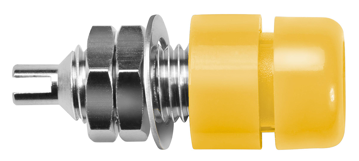 Gniazdo bananowe Żeński Połączenie lutowane typ Gniazdo bananowe Żółty 20A Schutzinger rozmiar 4 mm