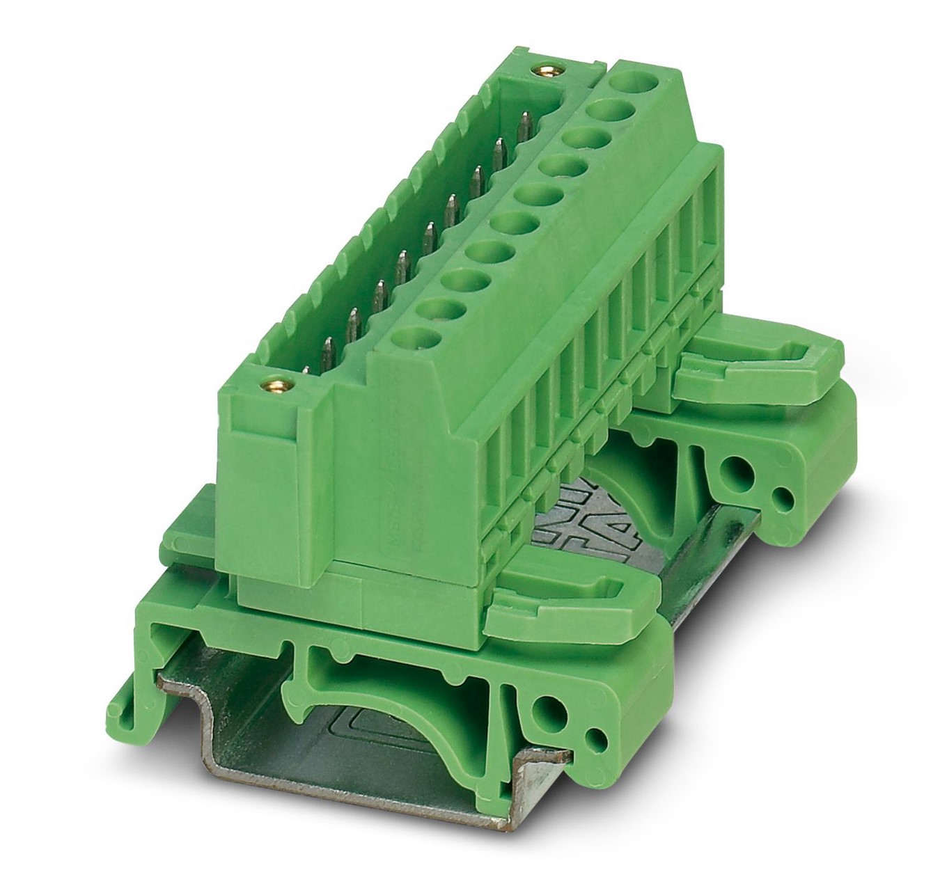 Złącze szyny DIN, przekrój nominalny: 2.5 mm², kolor: Zielony, prąd znamionowy: 12 A, napięcie znamionowe (III/2): 320 V, powierzchnia styku: Cyna, typ styku: Złącze męskie, liczba potencjałów: 6, liczba rzędów: 1, Liczba położeń w rzędzie: 6, liczba połączeń: 6, zakres produktu: UMSTBVK 2,5/.