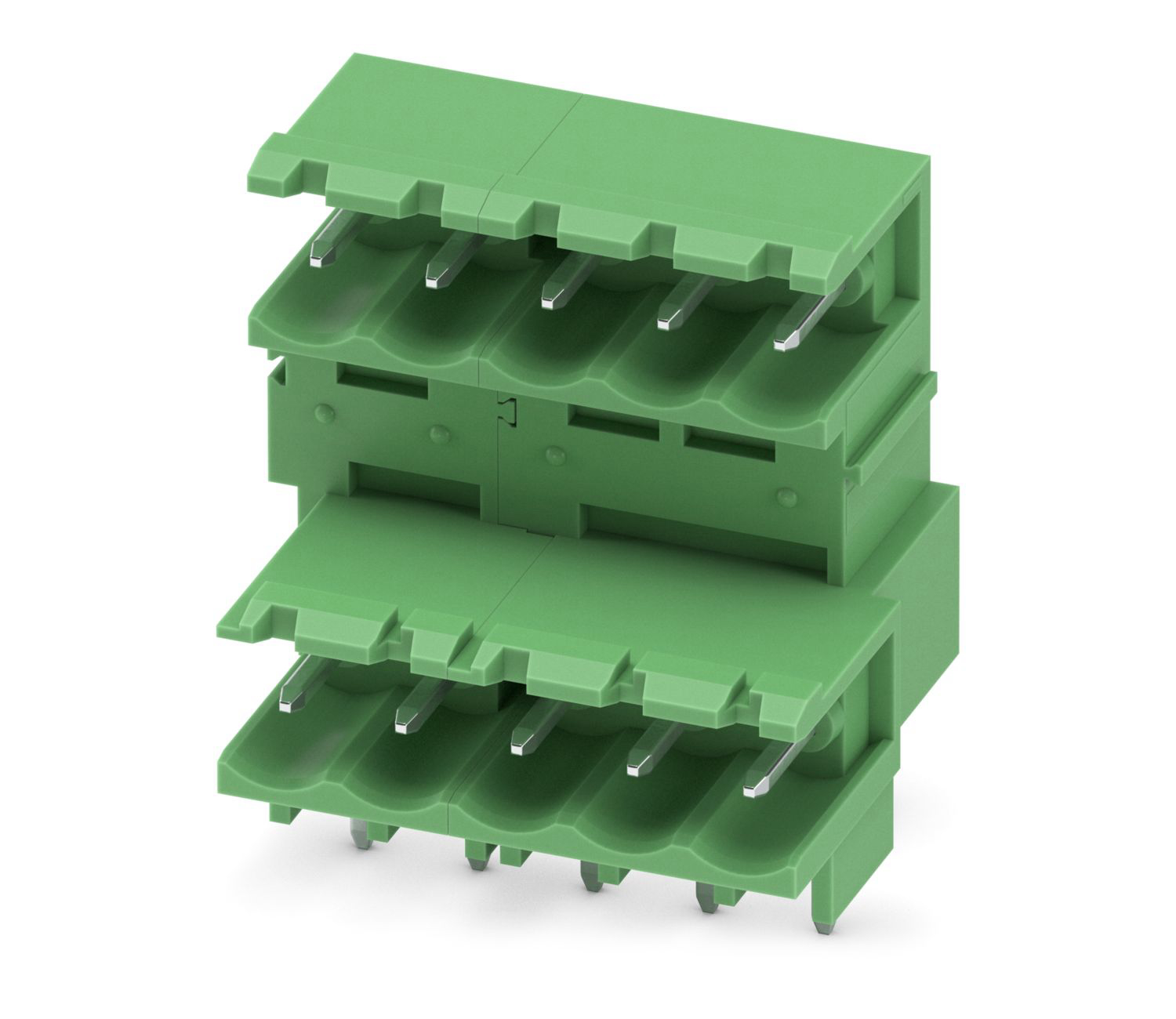 Złącza PCB, przekrój nominalny: 2.5 mm², kolor: Zielony, prąd nominalny: 10 A, napięcie znamionowe (III/2): 320 V, powierzchnia styku: Cyna, typ styku: Złącze męskie, liczba potencjałów: 10, liczba rzędów: 2, Liczba pozycji w rzędzie: 5, liczba połączeń: 10, zakres produktu: MDSTBW 2,5/.