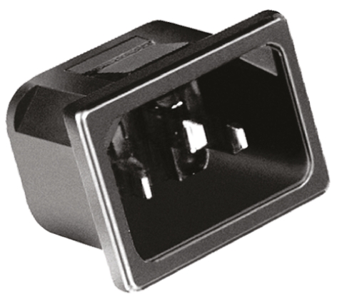 Szeroka gama wlotów mocy typu zatrzaskowego i kołnierzowego niefiltrowanego C-14 z zaciskami faston, termoplastyczne obudowy UL94V-0 o maksymalnym napięciu znamionowym 250 V.