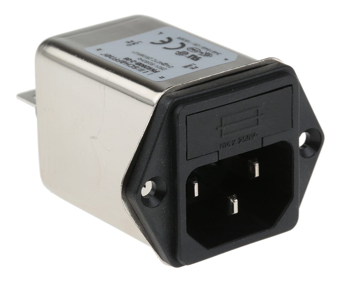 Wtyczki IEC z wbudowanym filtrem sieciowym. Konstrukcja z myślą o filtrowaniu zakłóceń przenoszonych przez sieć, w przypadku gdy same kondensatory mogą okazać się niewystarczające.