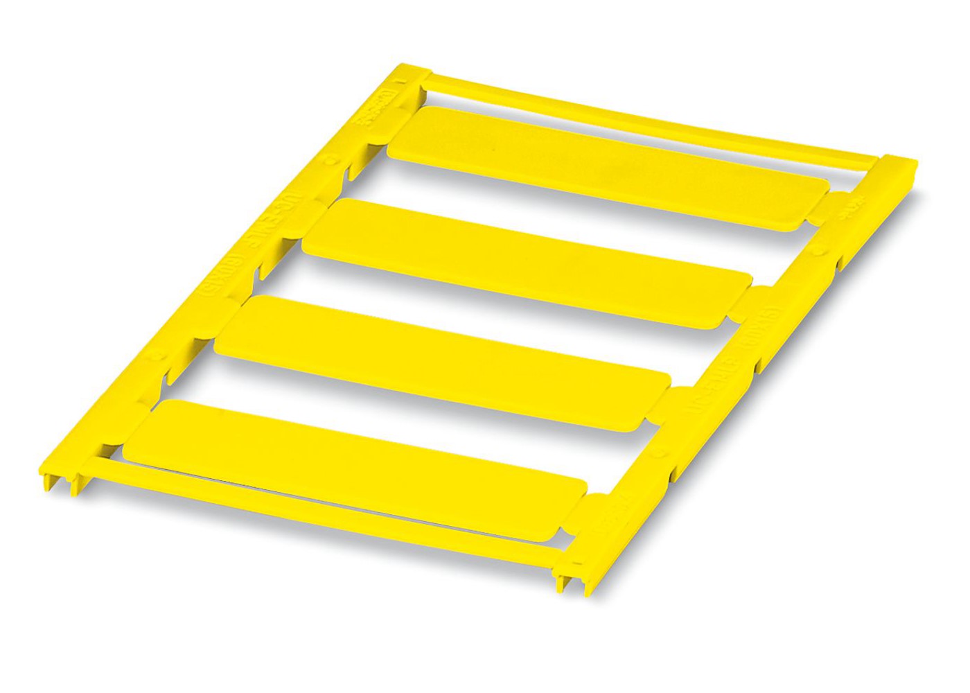 Znaczniki zatrzaskowe, arkusz, żółty, bez etykiety, mogą być oznaczone: Kolor identyfikatora BLUEMARK, identyfikator BLUEMARK, BLUEMARK CLED, PLOTMARK, CMS-P1-PLOTER, Typ montażu: Zatrzaśnięty w uchwycie znacznika, rozmiar pola do pisania: 60 x 15 mm, liczba pojedynczych etykiet: 4