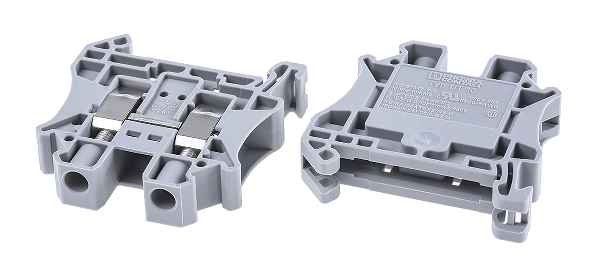 Blok zacisków przelotowych Phoenix Contact poziomy: Pojedynczy 20 → 6AWGŚruba UT 10 76A 1 kV