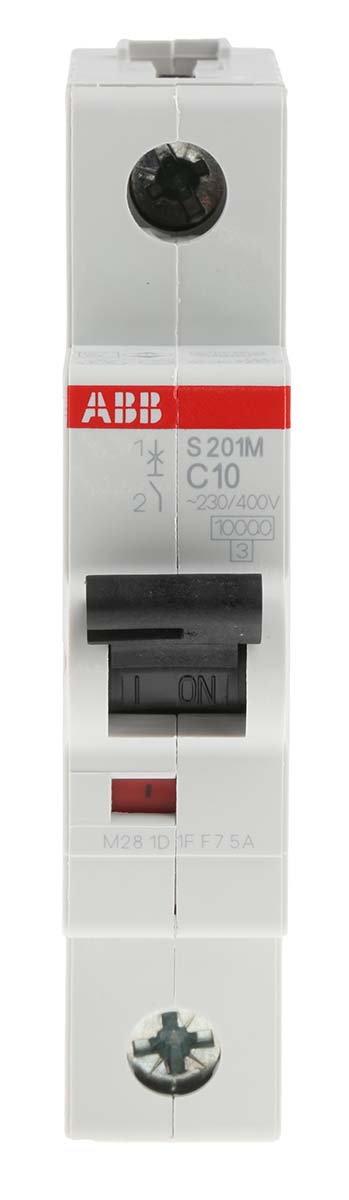 Wyłącznik nadprądowy MCB, Typ C, 1-biegunowy, 10A, 253V, 72V, na szynę DIN, ABB S201M-C10, S200M