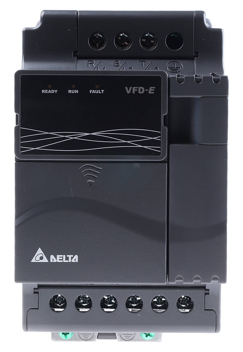Inwerter serii VFD-E to bezsensorowy mikrodysk AC typu micro. Seria VFD-E charakteryzuje się niską mocą, stałym momentem obrotowym i napędem klasy IP20.
