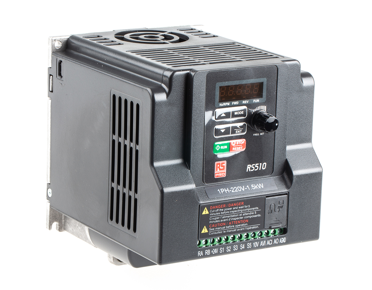 Od firmy RS PRO jest to jednofazowy napęd falownika RS510 o mocy 1,5 kW z wbudowanym filtrem i panelu sterowania do użytku z silnikami AC oraz nadaje się do różnych zastosowań napędowych.