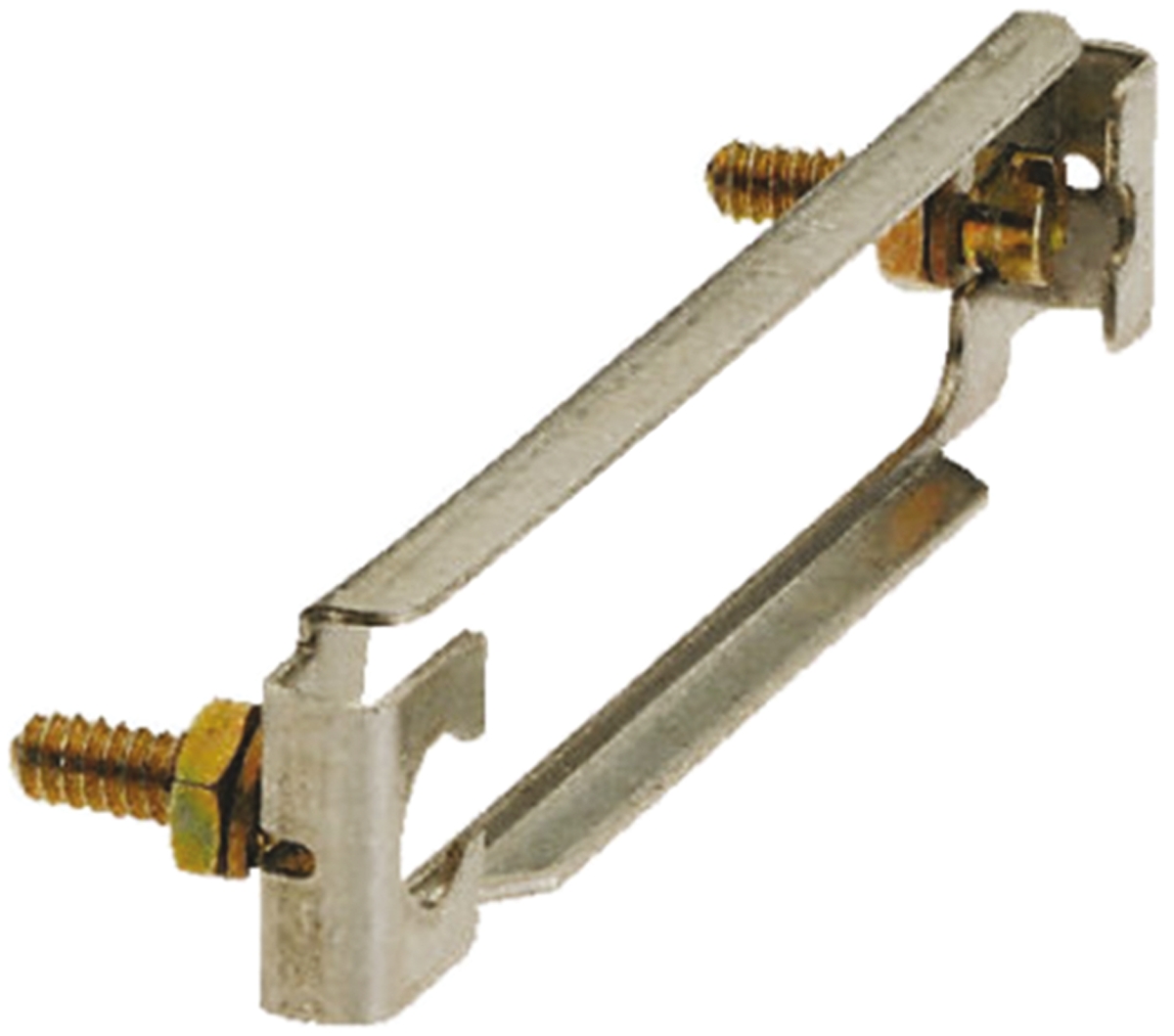 Szereg zespołów zamków ślizgowych do stosowania ze złączami typu D. Zespół składa się ze stalowej belki przesuwnej z elementami mocującymi.