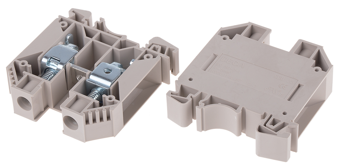 Kostka zaciskowa na szynie DIN RS PRO poziomy: Pojedynczy 10 → 2AWGŚruba 114 (UL/CSA) A, 125 (IEC) A 1 kV