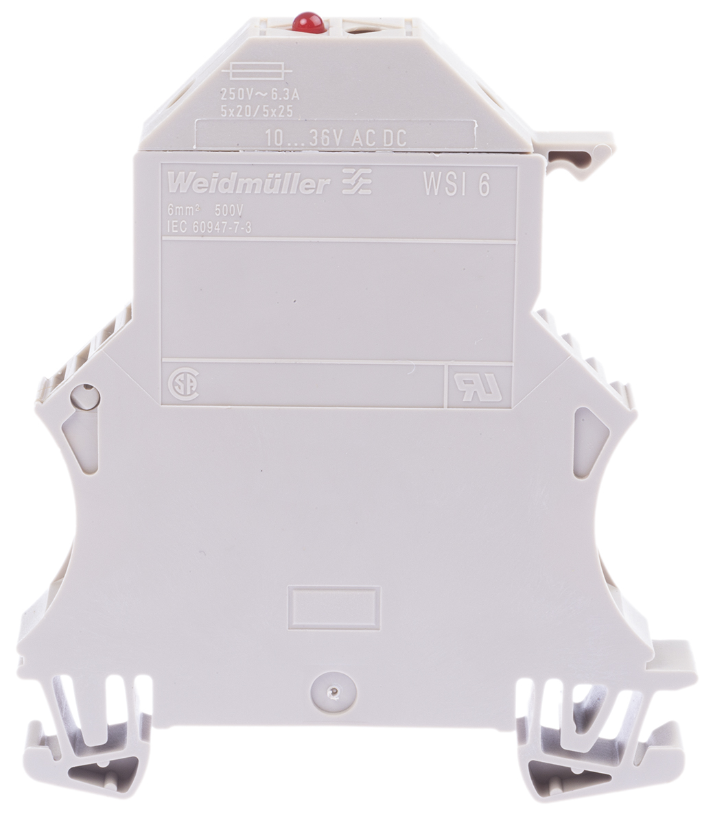 Złączka szynowa bezpiecznikowa Weidmuller poziomy: Pojedynczy 20 → 8AWGŚruba WSI raster: 7.9mm 6.3A 10→