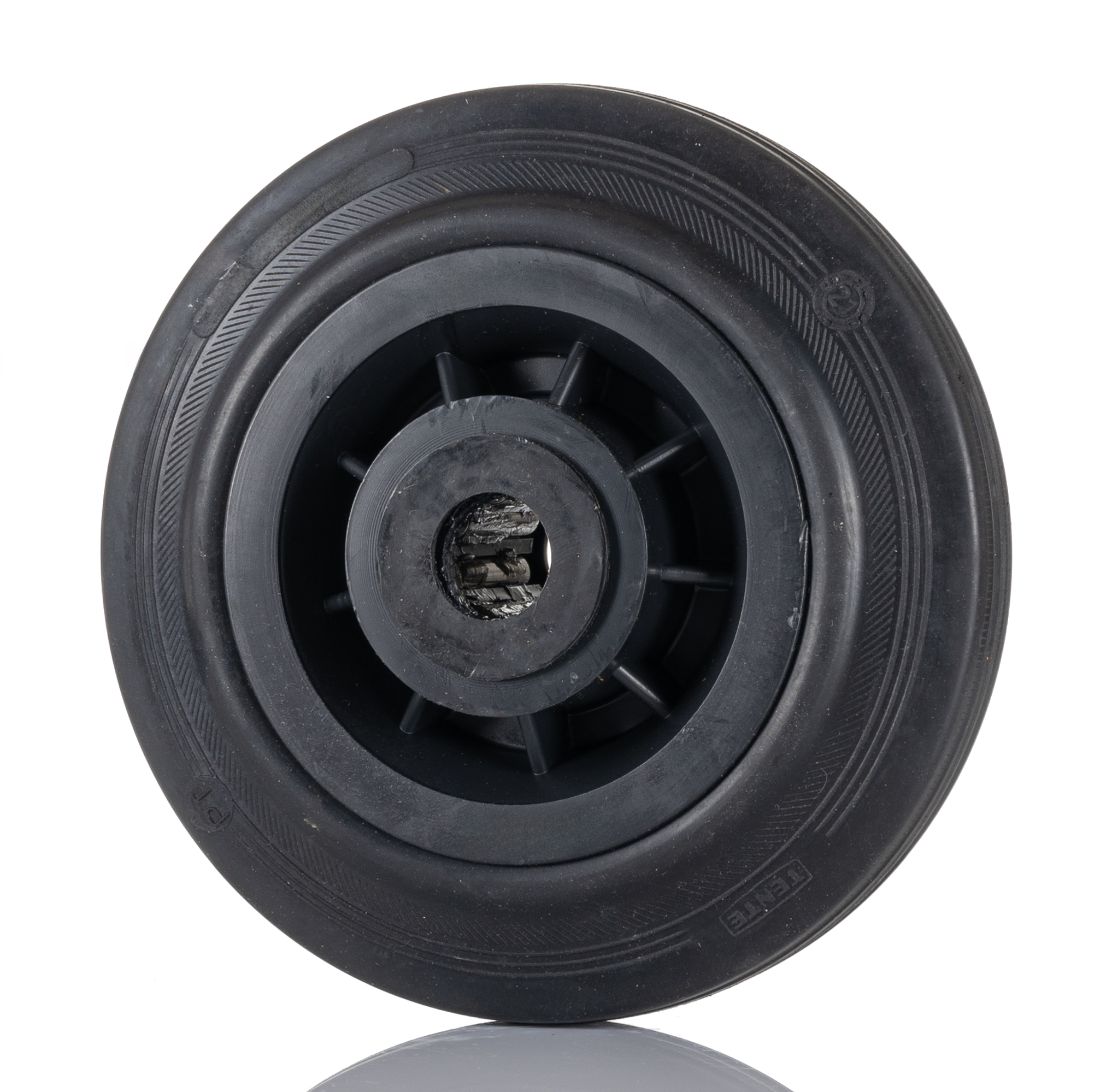 Koła z pełnej gumy są ciche, pochłaniają wstrząsy, mogą się toczyć na małych przedmiotach i chronić kosztowne powierzchnie podłogi.