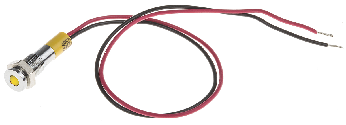 Lampka kontrolna do montażu panelowego 24V dc, Żółta 6mm LED Chrom Wyprowadzenia RS PRO