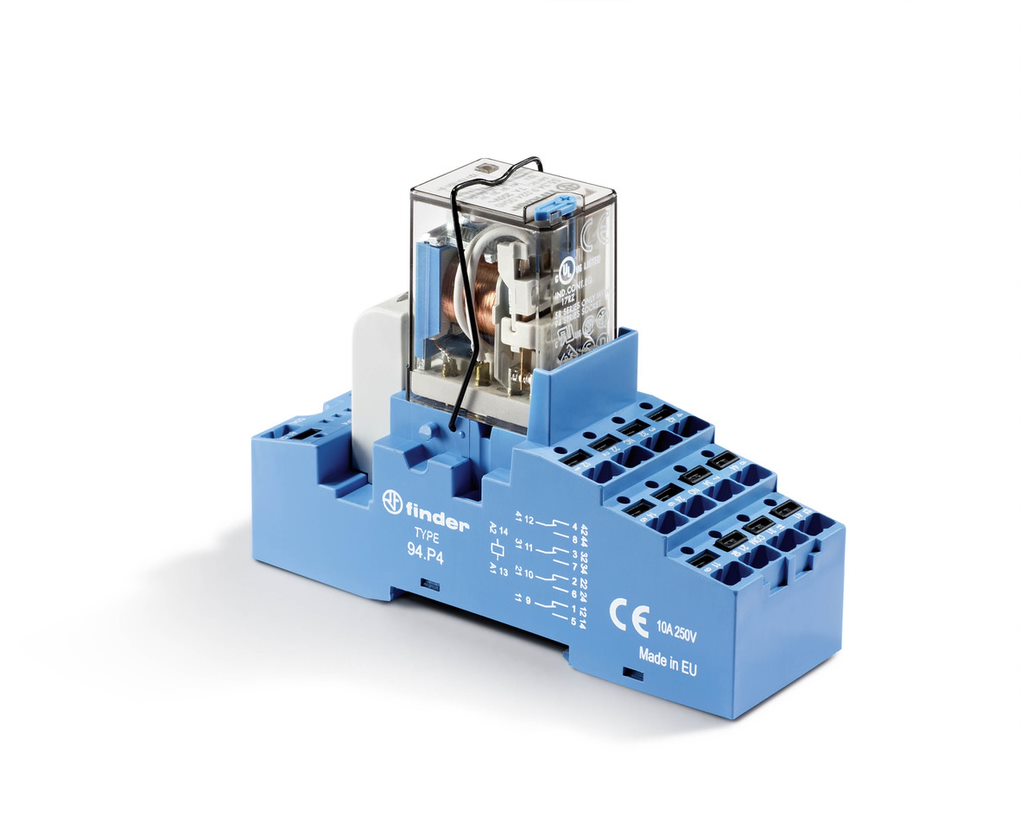Przekaźnik z interfejsem 12V ac Finder 4PDT 7A Szyna DIN bieguny 4 Wciskane