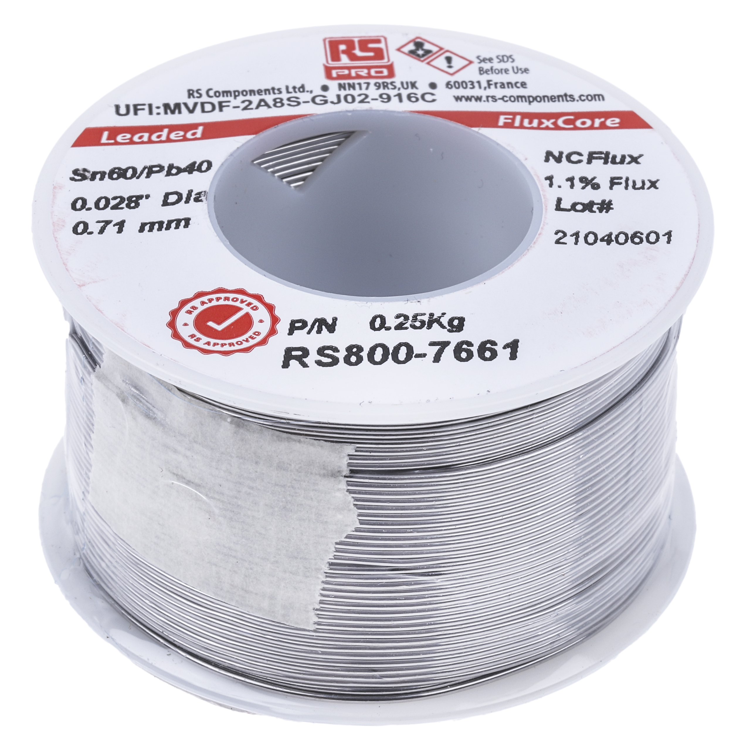 Lutowie z ołowiem średnica 0.71mm RS PRO 40% Pb temp. topnienia 183°C 250g 60% Zn