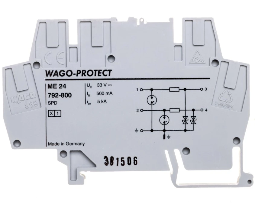 1. Ochronnik przeciwprzepięciowy w złączce do ochrony 2 żył przewodowych IT ME24 szary 792-800 512.47