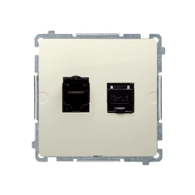 14. Simon Basic Gniazdo komputerowe podwójne RJ45 kategoria 6 z przesłoną przeciwkurzową beż BM62.01/12 132.66