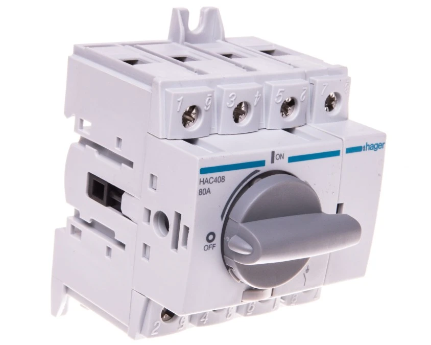 2. Rozłącznik izolacyjny 3-fazowy 4P 80A 380V rozmiar 2 HAC408 HAGER 326.86