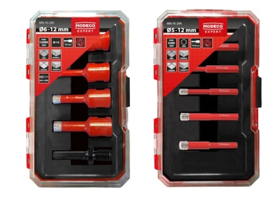 5 el kpl otwornic diamentowych m14 6 8 10 12 mm + m14/hex adap max 12000 obr/min MN-76-290