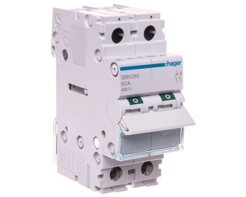 2. Rozłącznik izolacyjny 1-fazowy 2P 80A 400V SBN280 HAGER 61.35