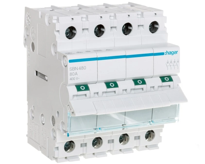Rozłącznik izolacyjny 3-fazowy 4P 80A 400V AC SBN480 HAGER