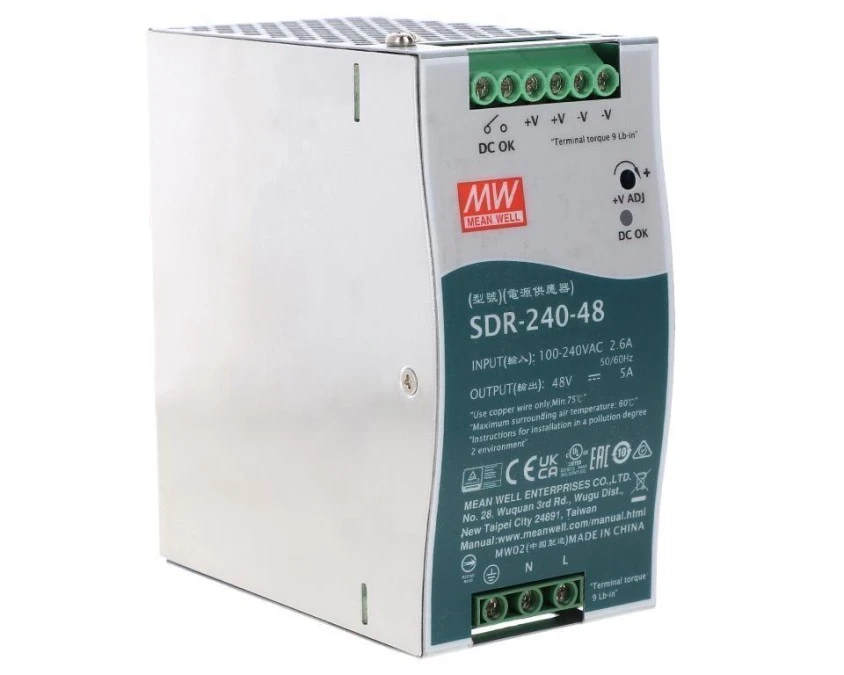 The Mean Well SDR-240-48 is a rail mounted power ...