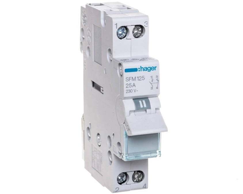 Modułowy przełącznik instalacyjny I-II 2-obwodowy 1NO+1NC 25A 230VAC SFM125 HAGER
