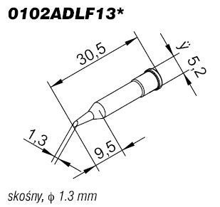2. Soldering tip, pencil point, Ø 1.3 mm, (T x L x W) 1.3 x 30.5 x 1.3 mm, 0102ADLF13/SB 70.90