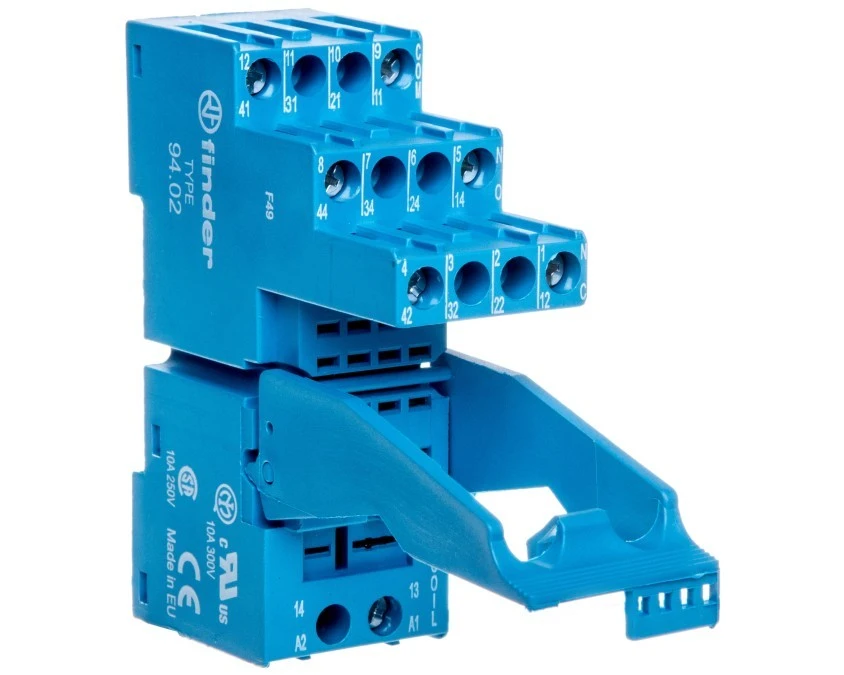 14. Gniazdo przekaźnika; F97.02.SPA; na szynę DIN35; śrubowy na panel; niebieski; z obejmą; Finder; RoHS; Kompatybilne z przekaźnika 25.39