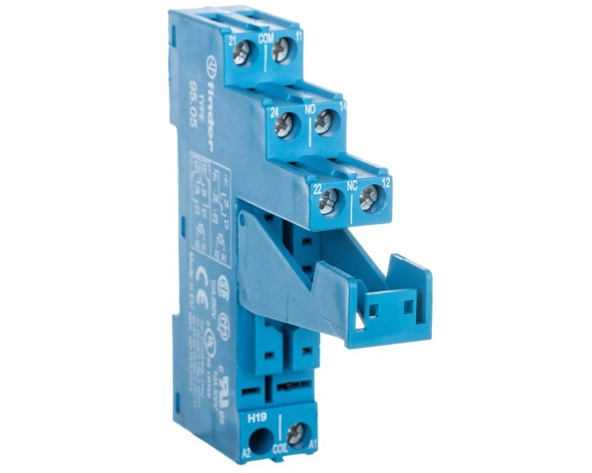 5. Gniazdo przekaźnika; F95.05.SPA; na szynę DIN35; śrubowy na panel; niebieski; z obejmą; Finder; RoHS; Kompatybilne z przekaźnika 24.36