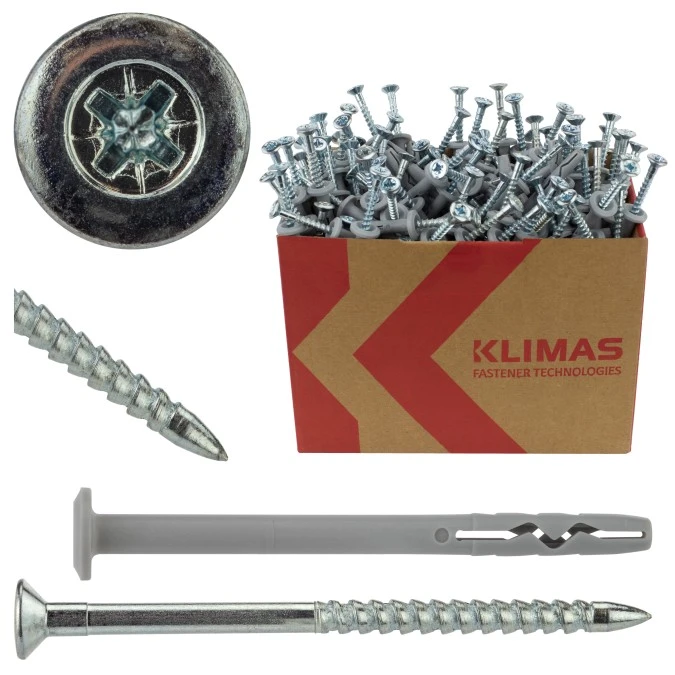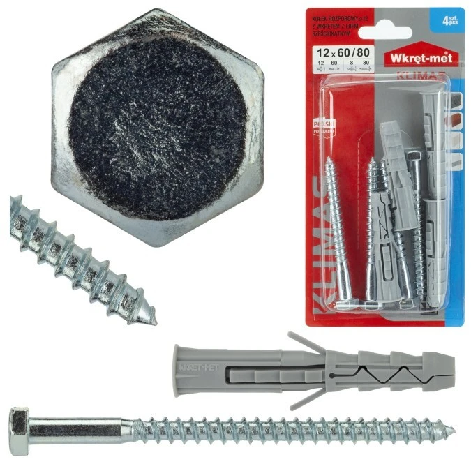 Kołki rozporowe KKX 12x60mm z wkrętem 8x80mm z łbem sześciokątnym do betonu, cegły ceramicznej i cegły silikatowej KLIMAS 4szt
