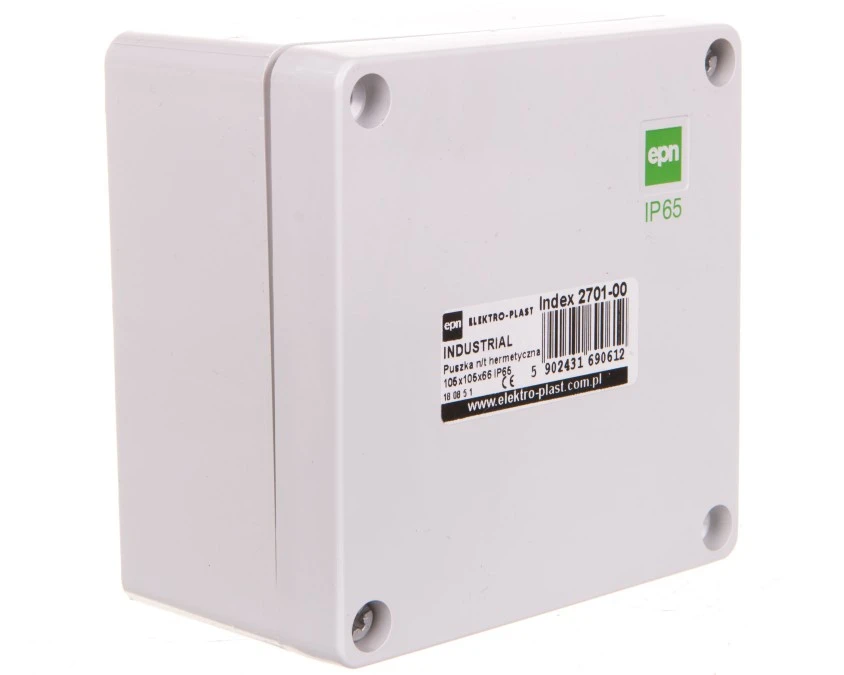 4. Puszka natynkowa hermetyczna IP65 105x105x66 szara Industrial 2701-00 Elektro-Plast 10.71