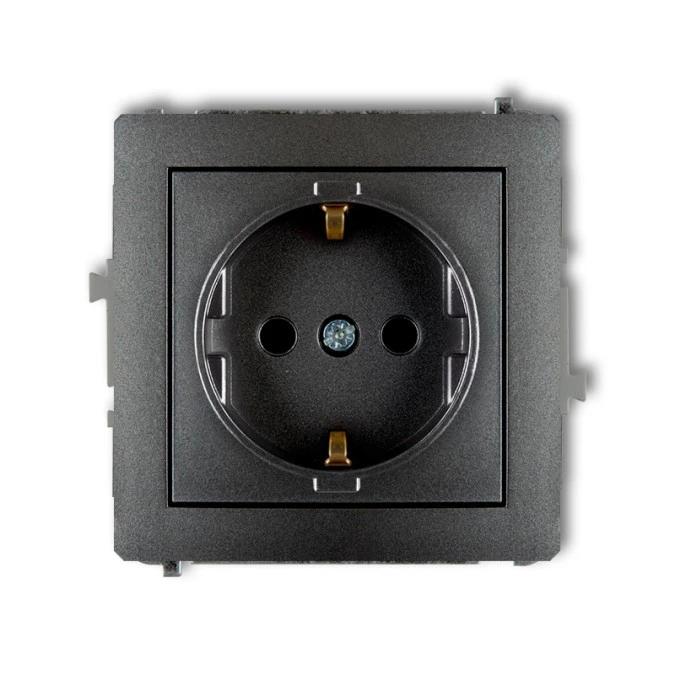 DECO Gniazdo pojedyncze bez uziemienia (przesłony torów prądowych) grafitowy 11DGP-1p KARLIK