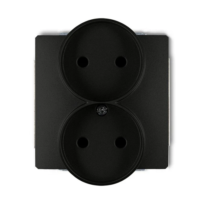 1. DECO Gniazdo podwójne bez uziemienia do ramki (przesłony torów prądowych) czarny mat 12DGPR-2p KARLIK 30.26